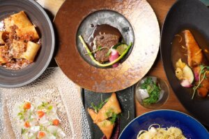 和の感性とイタリアンの華やかさを掛け合わせた三種の前菜、