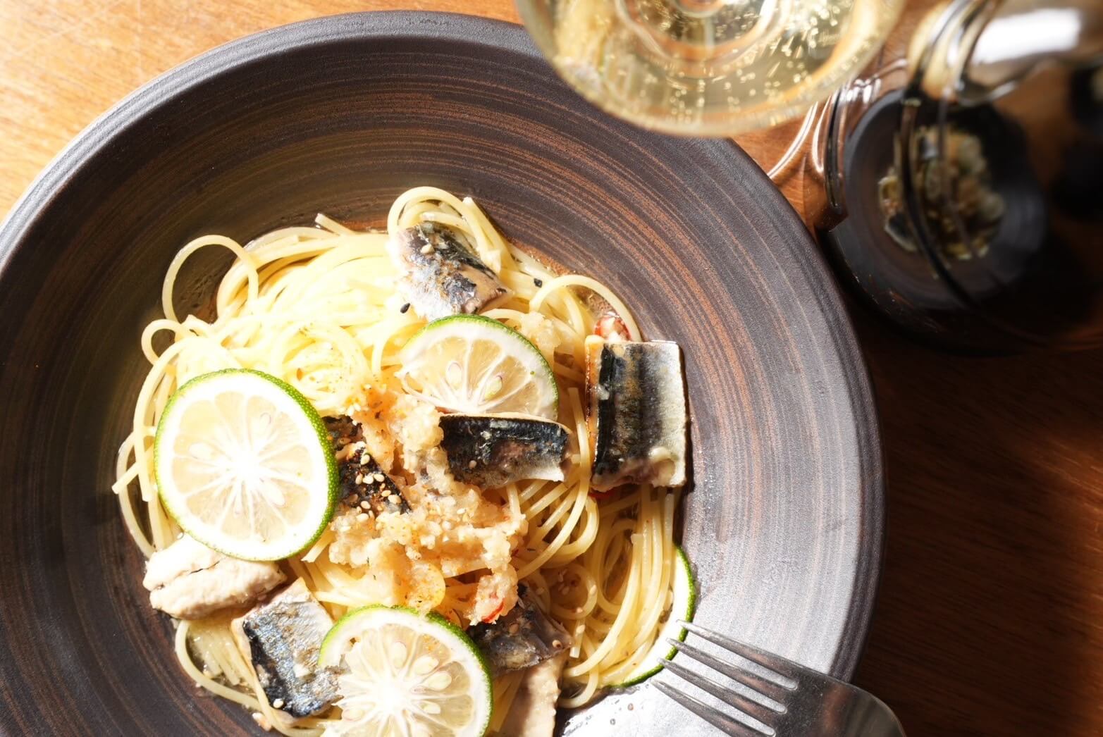 【秋刀魚とスダチのしぐれペペロンチーノ】