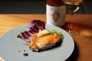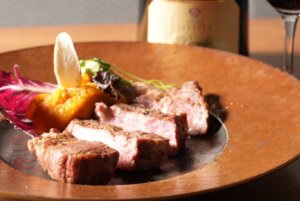 【岡山県備前産・仔猪(こいのしし)のグリル~青かびチーズのお味噌を添えて】